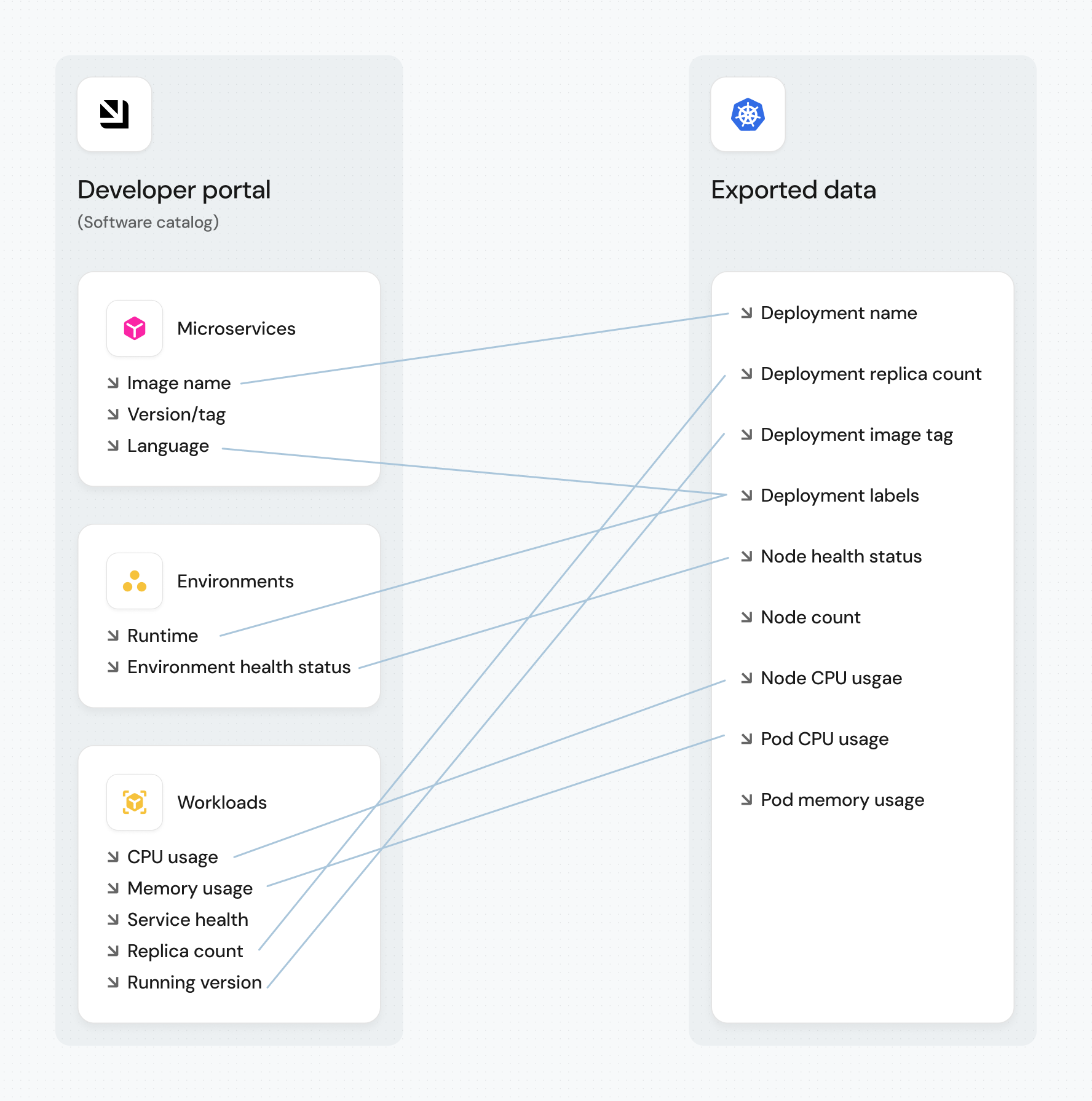 Port's Kubernetes integration allows you to model Kubernetes resources in your software catalog and ingest data into them.
