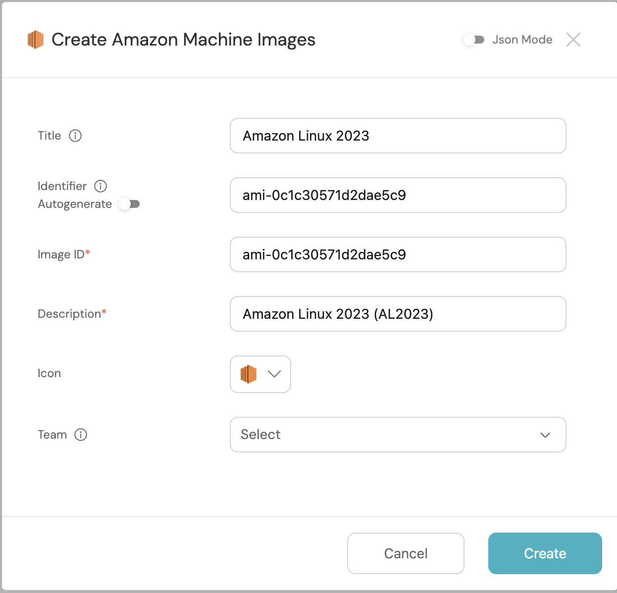 Before we continue, add some entities onto the AMI blueprint. The identifier will be the AMI Image ID.