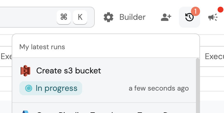 Click Execute. On the top right corner of the page, click on the action button to view the action progress: