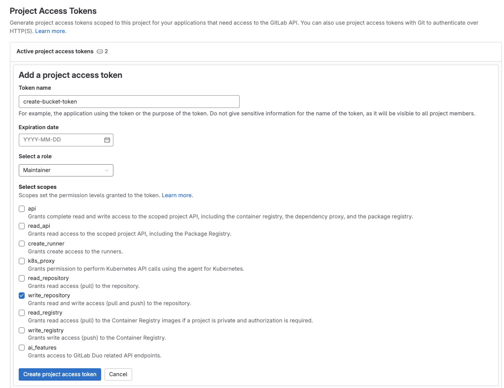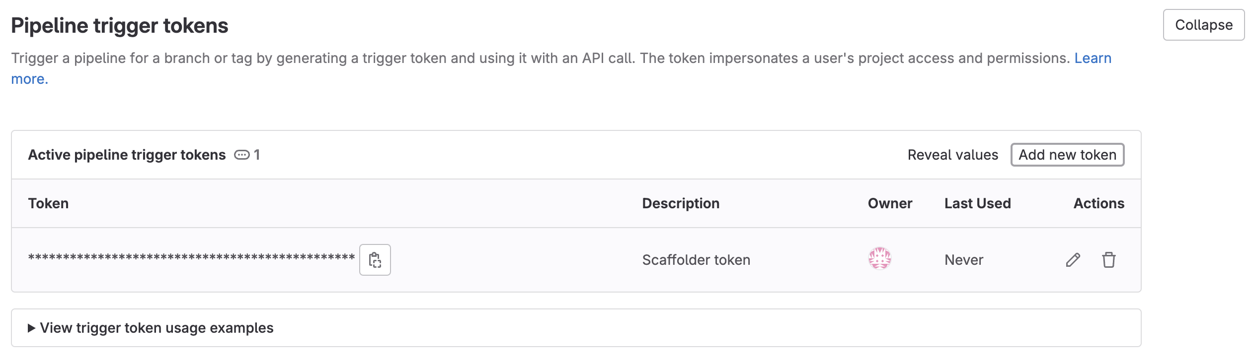 - The value for {GITLAB_TRIGGER_TOKEN}is the trigger token you create in the setup the action's backend section.