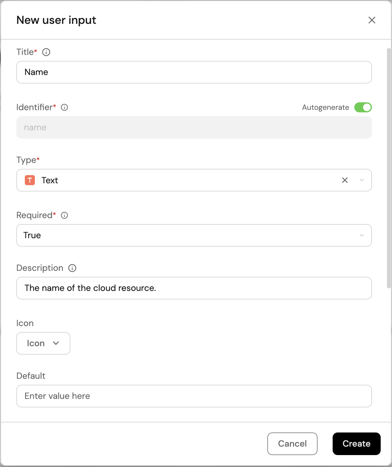 - In your source repository (port-actionsfor example), create a file namedcloudResource.tfunder/templates/(it's path should be/templates/cloudResource.tf).