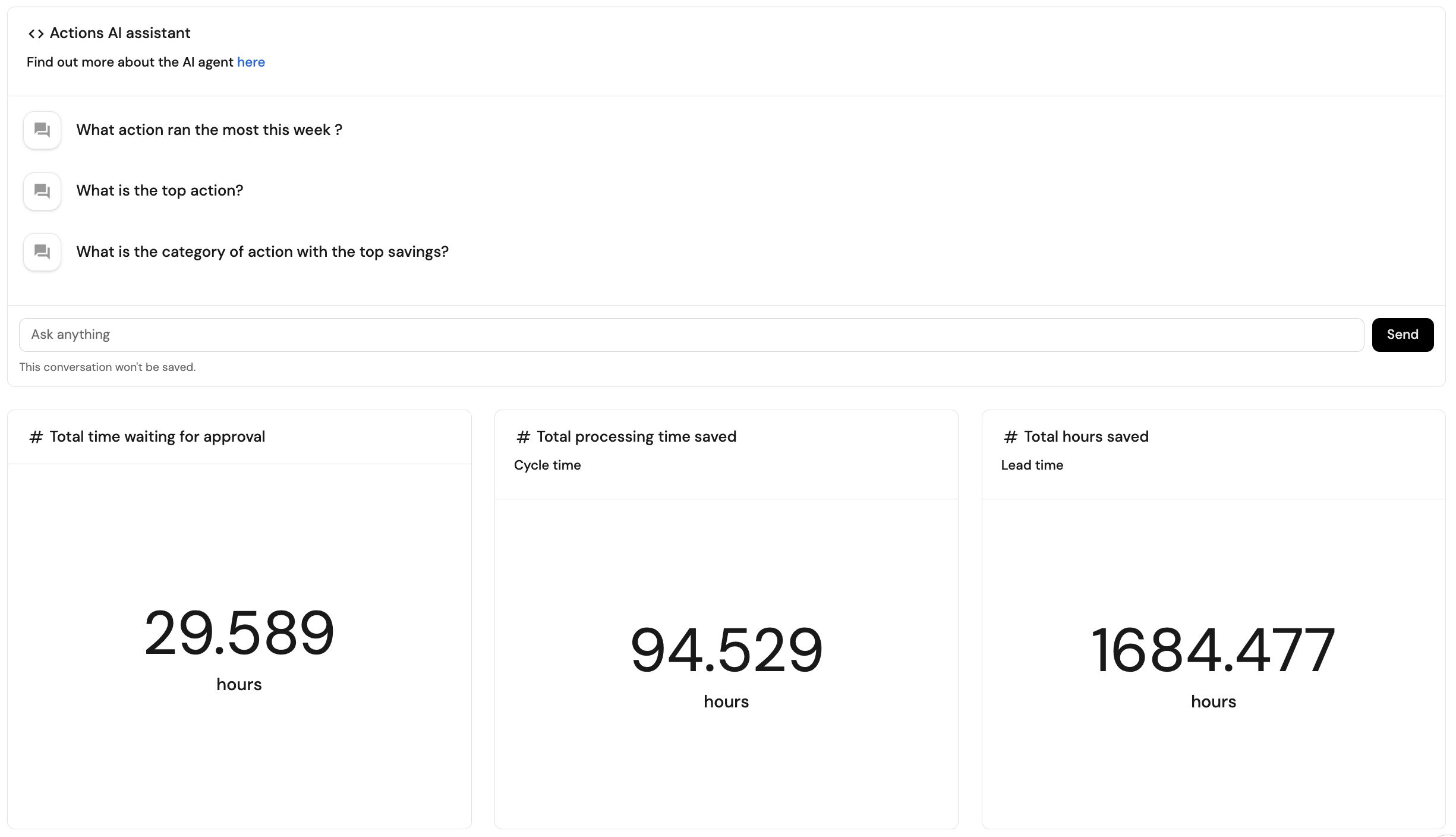 Dashboards let you observe, track, and communicate insights from your action setup.