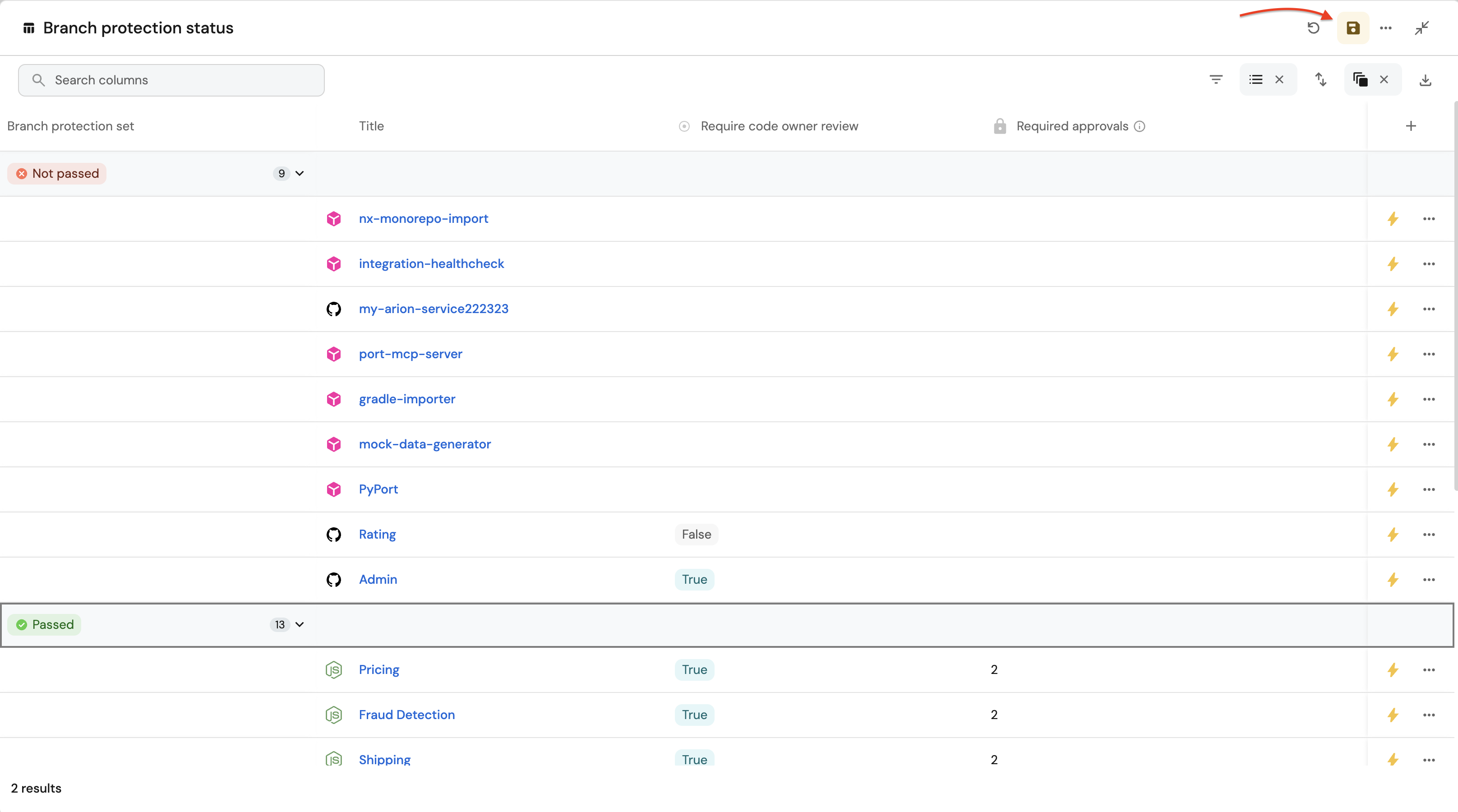 Click on the Group by any Columnicon and select Branch Protection Status.
