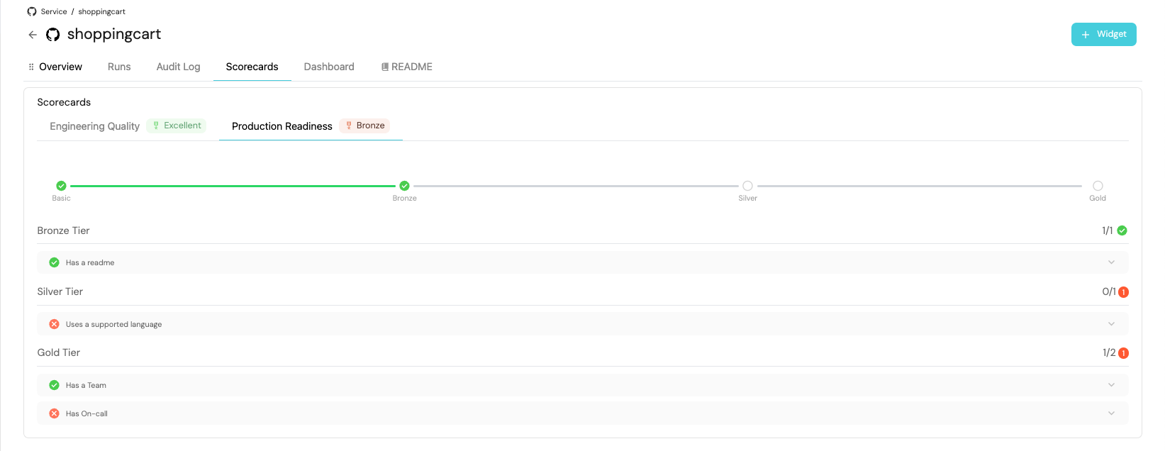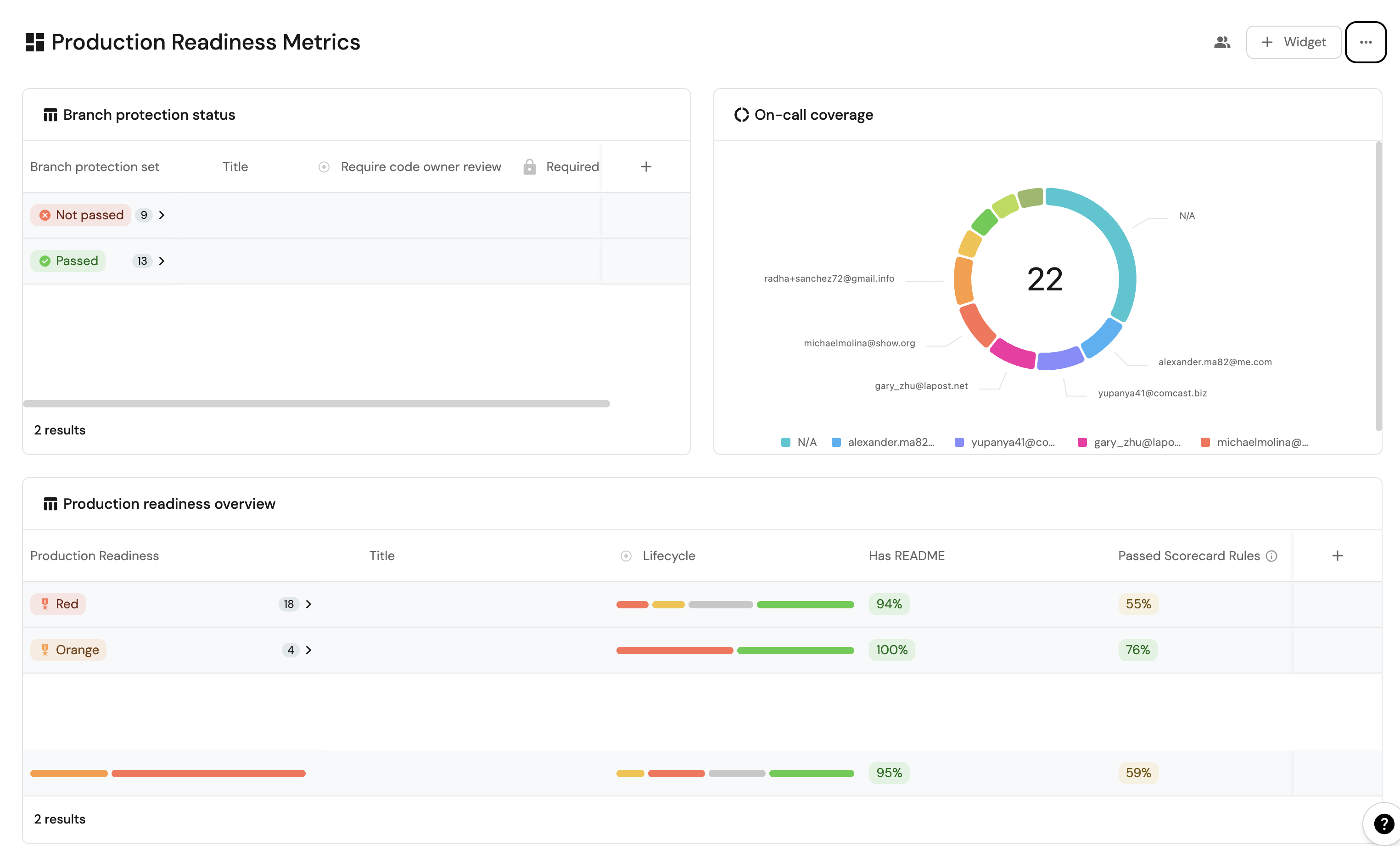 These widgets will give you a comprehensive view of your services' production readiness status, making it easy to identify areas that need attention.