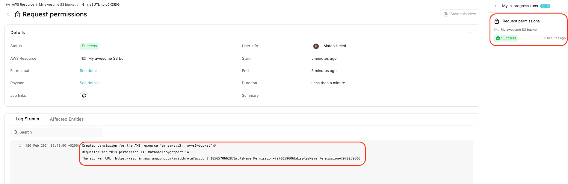 You are now signed in to your new role, which has permissions as defined in the Port action! ๐ฅณ