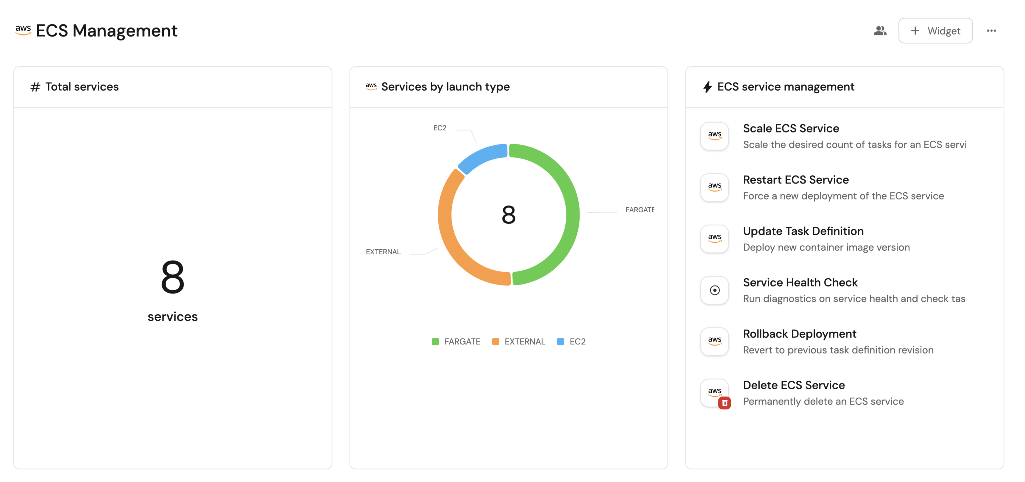 - Monitor the health and scaling status of all ECS services across clusters from a single dashboard.
