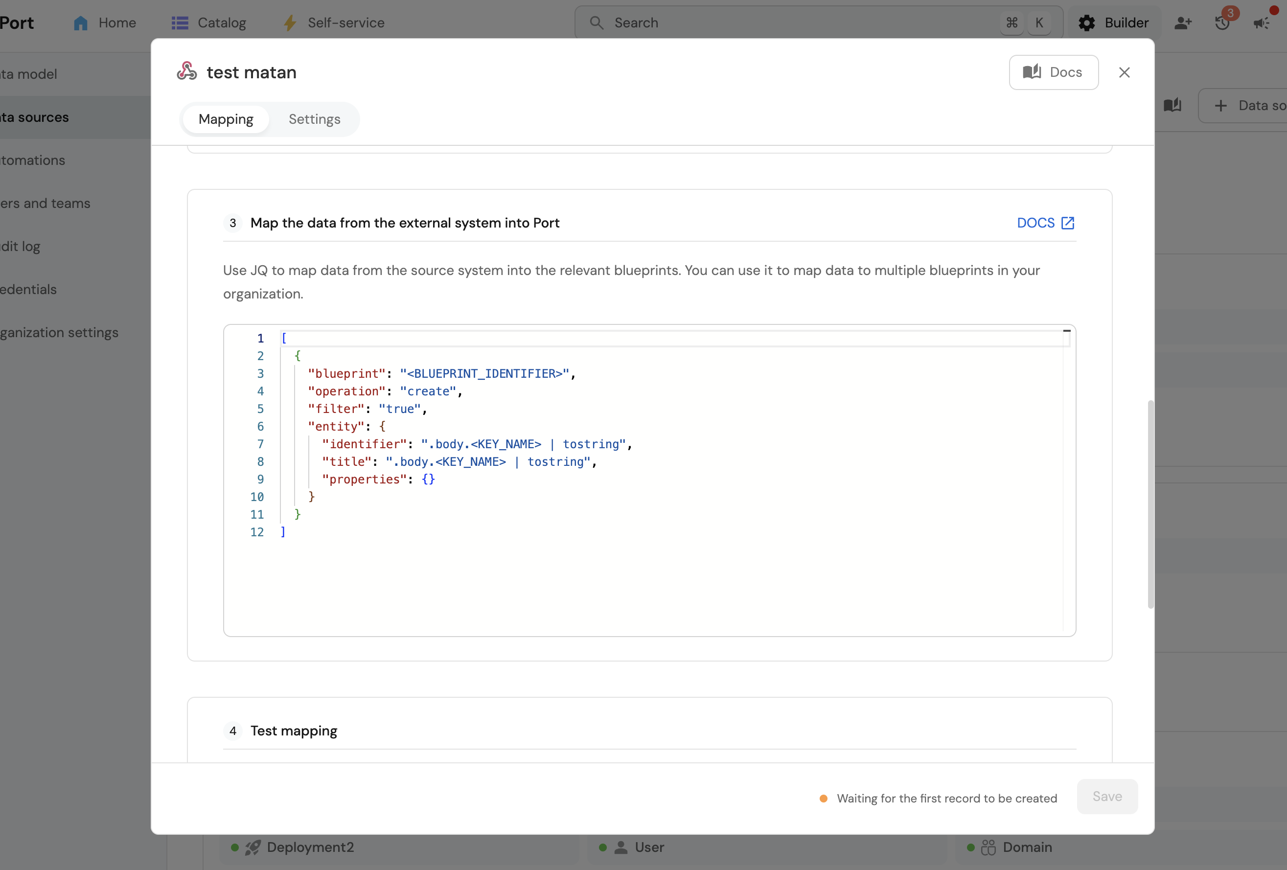 - Copy and store the generated webhook URL (should be in a format like https://ingest.getport.io/abc123).