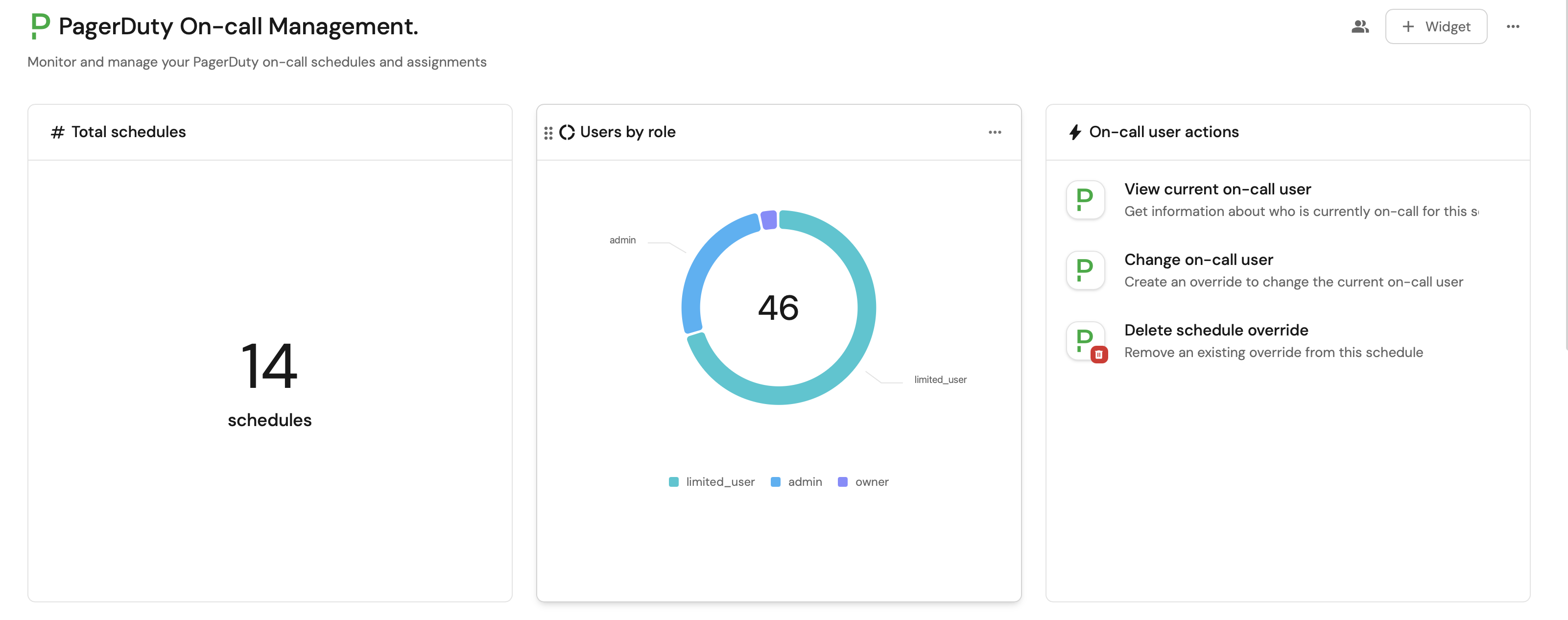 - Set up self-service actions to manage on-call schedules (view schedules, change on-call users, create overrides).