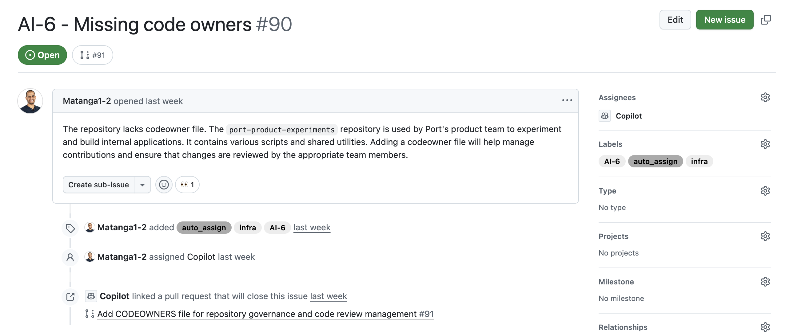 - Go to the issue in GitHub and verify that Copilot is assigned.