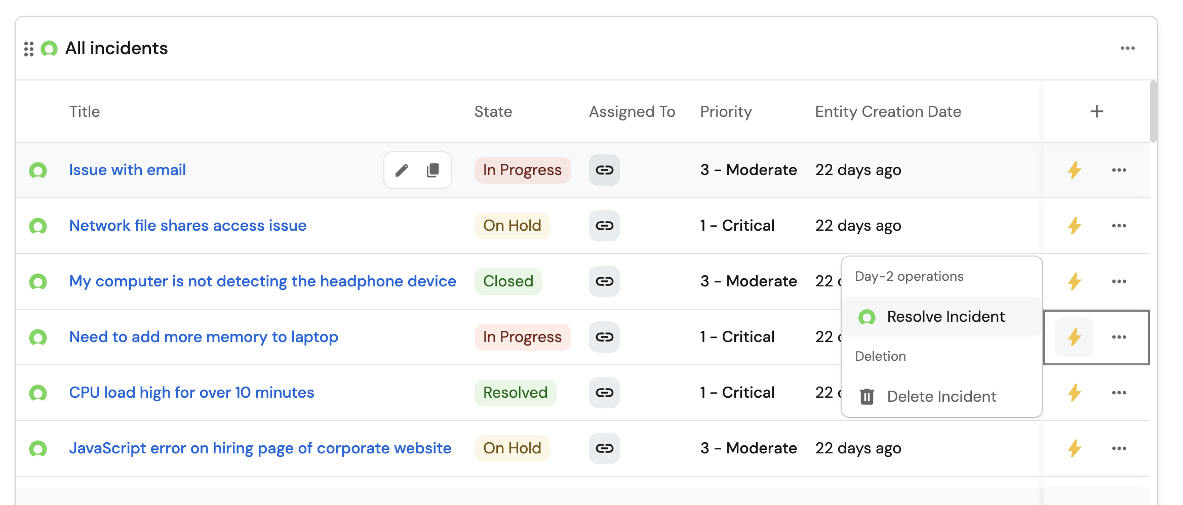 - Set up self-service actions to manage incidents (create, resolve, and delete).