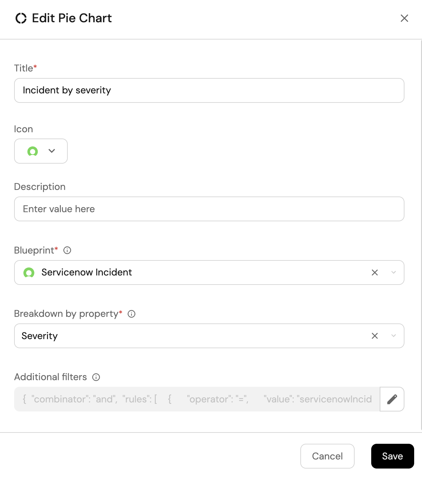 Title: Incident by severity(add theServicenowicon).