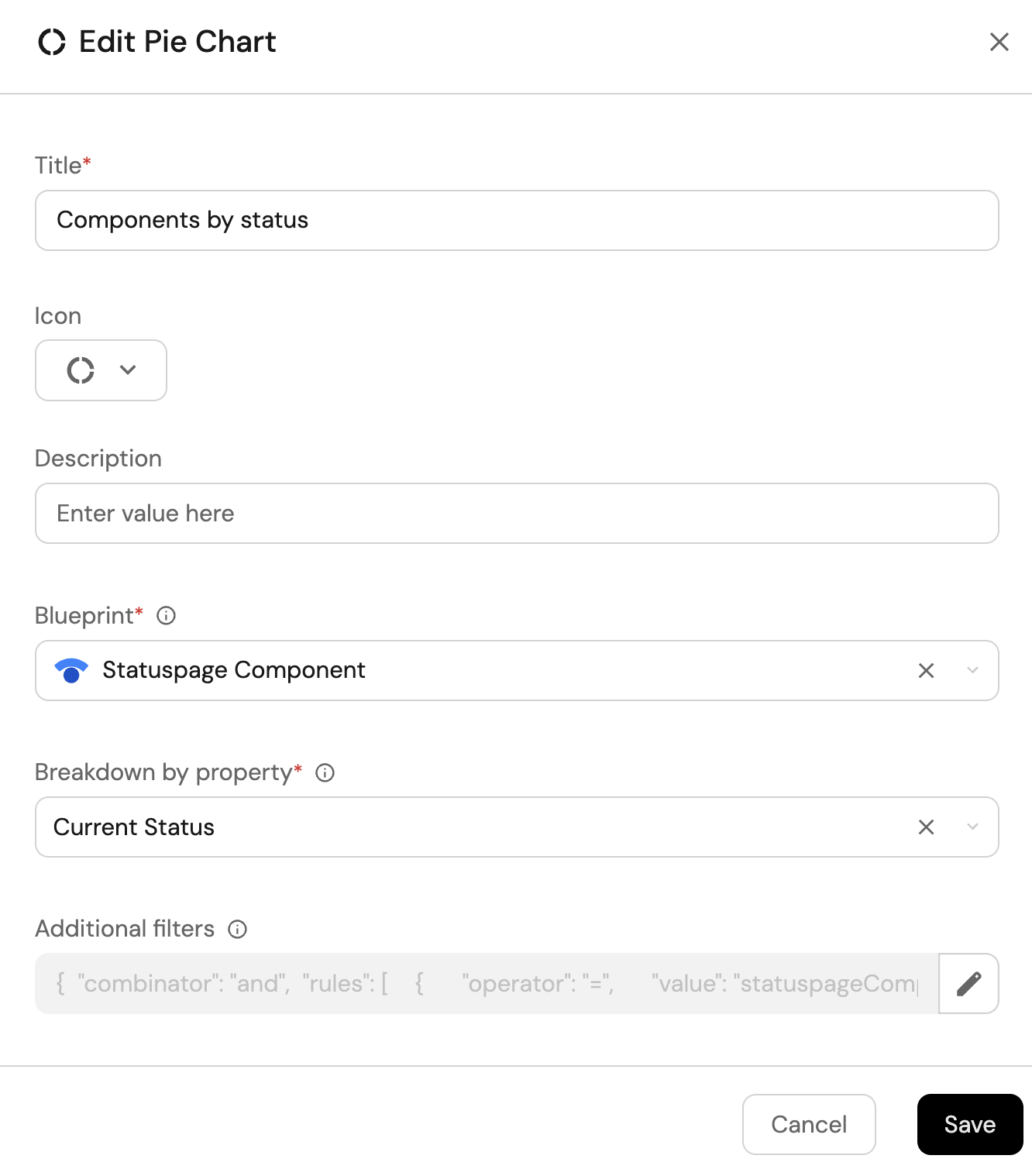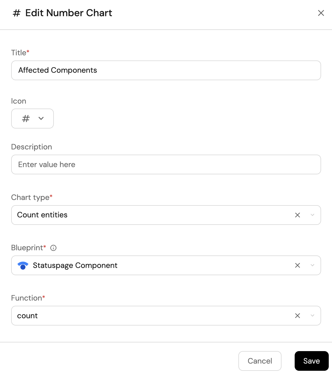 Select Count entitiesChart type and choose Statuspage Component as the Blueprint.