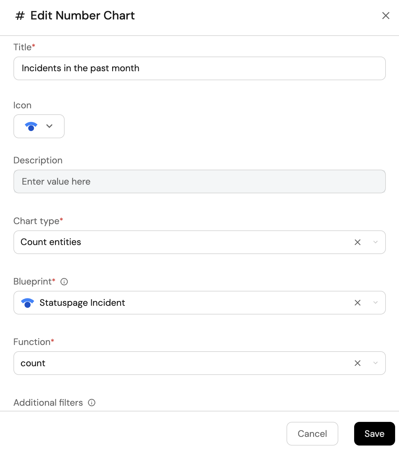 Select Count Entities (All Entities)Chart type and choose Statuspage Incident as the Blueprint.