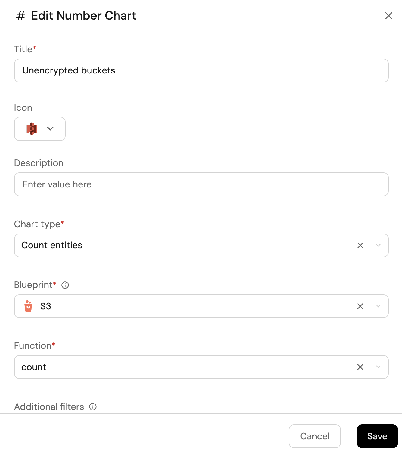 Select Count entitiesChart type and choose S3 as the Blueprint.