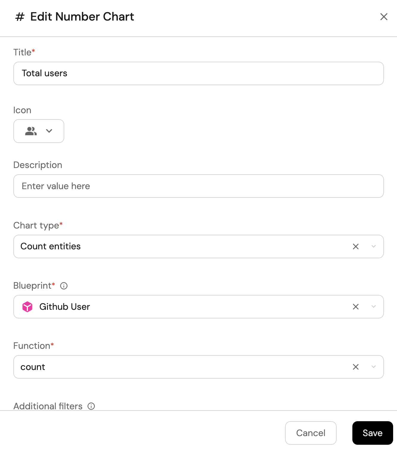 Select Count entitiesChart type and choose GitHub User as the Blueprint.