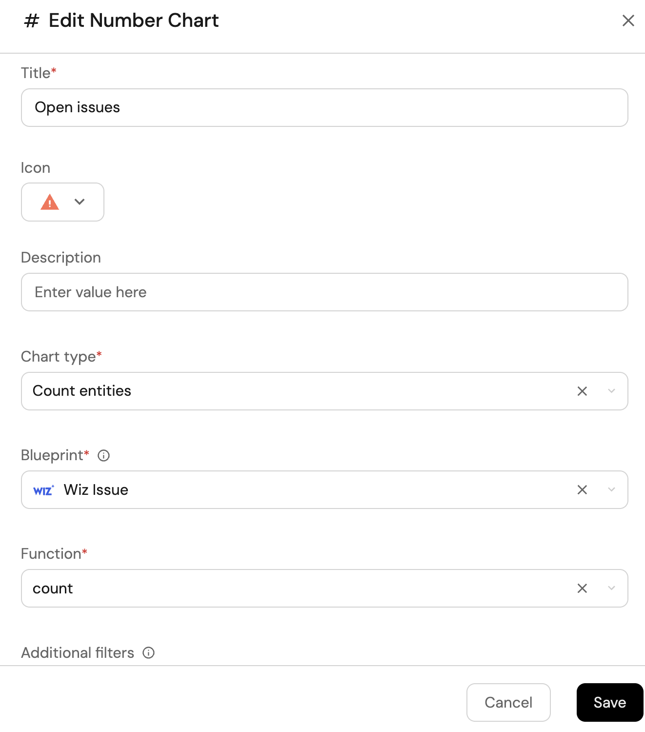 Select Count entitiesChart type and choose Wiz Issue as the Blueprint.