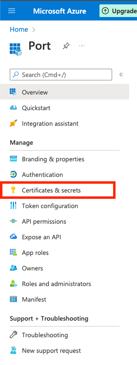 Certificates & Secrets.